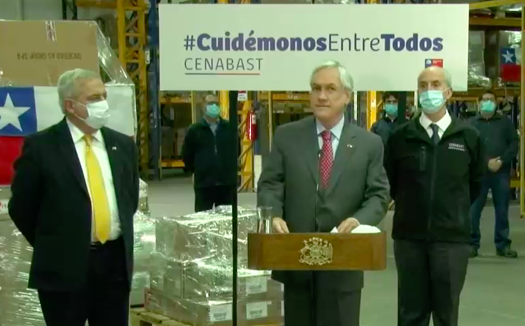 Acompañado por el minsitro de Salud, Jaime Mañalich, el mandatario llegó este martes hasta la Central de Abastecimiento del Sistema Nacional de Servicios de Salud (Cenabast). Desde ahí, dijo que“estamos enfrentado la más grave amenaza, el mayor desafío sanitario de los últimos 100 años”.