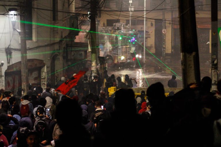 Producto de esto, personal de Carabineros llegó hasta el lugar, donde hizo uso del carro lanza aguas y lanzó bombas lacrimógenas.