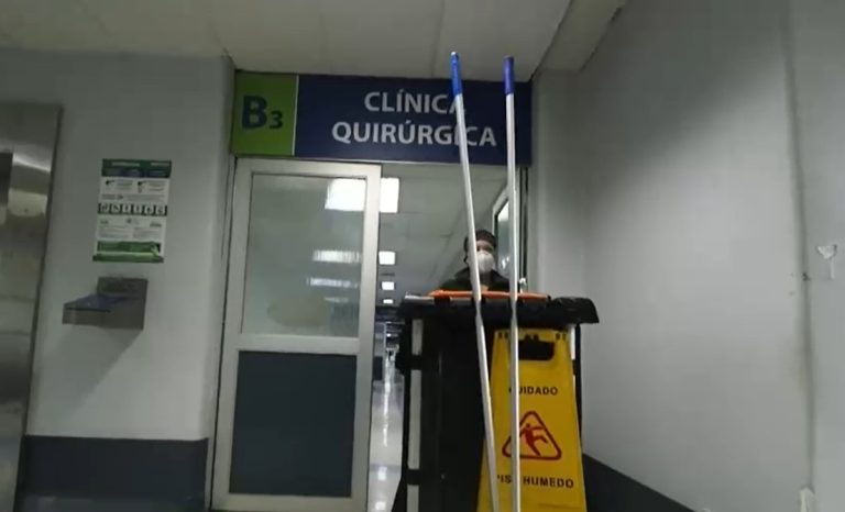 “Hasta el momento se nos está yendo de las manos el contagio“, dice uno de los trabajadores del Hospital Clínico Universidad de Chile. En su ronda ha sacado basura y desechos de pacientes infectados, los que en este recinto llegan a 25.