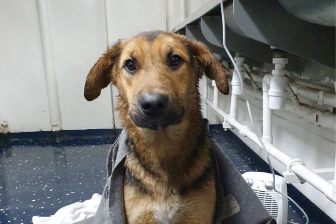 El perro se encuentra sano y salvo, según se aprecia en las imágenes y fue ratificado por la Armada.