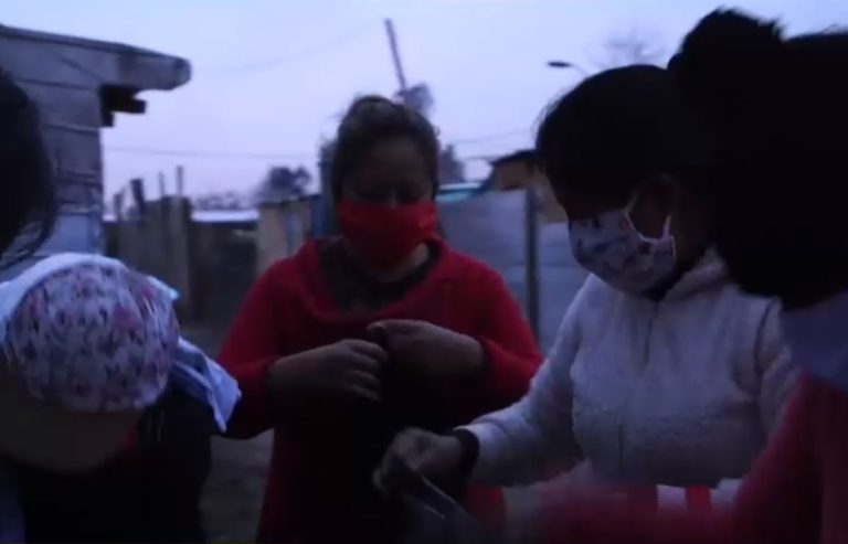 Son tres bolsas con ropa usada las que se reparten como pueden un grupo de mujeres trabajadoras de casa particular. Si bien varias tenían contrato, ya no reciben su sueldo en plena crisis sanitaria, donde la recomendación es quedarse en sus casas, en cuarentena.