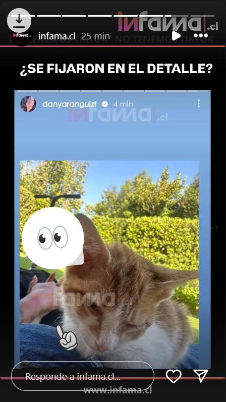 En el registro aparece el gato de Daniela Aránguiz, un felino de pelo naranjo y blanco que incorporó recientemente a su familia, mientras que de fondo se ve que está en el patio de su hogar.