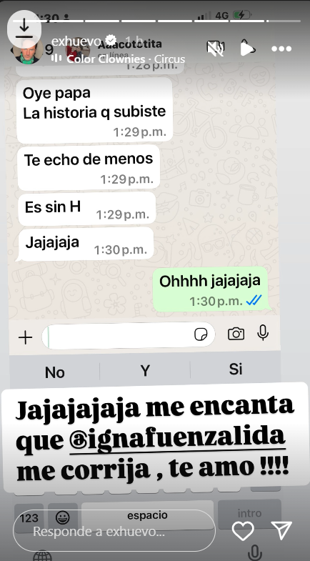 Su hija, Ignacia, le habló por WhatsApp y le escribió: "Oye, papá. La historia que subiste... Te echo de menos es sin h, jajajá".