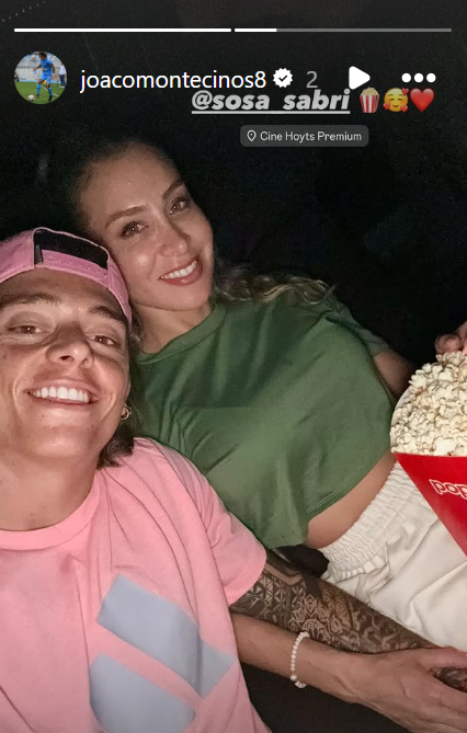 En la foto se ven juntos y tomados del brazo en un cine de la capital, donde el atacante de O'Higgins de Rancagua mencionó a Sosa, quien luego también compartió la imagen, la cual tiene emojis de cabritas, carita de amor y un gran corazón.