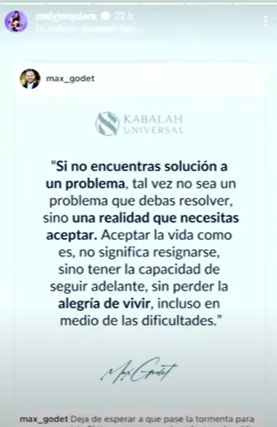 Asimismo, también compartió un texto que dice: "Si no encuentras solución a un problema, tal vez no sea un problema que debas resolver, sino una realidad que necesitas aceptar".