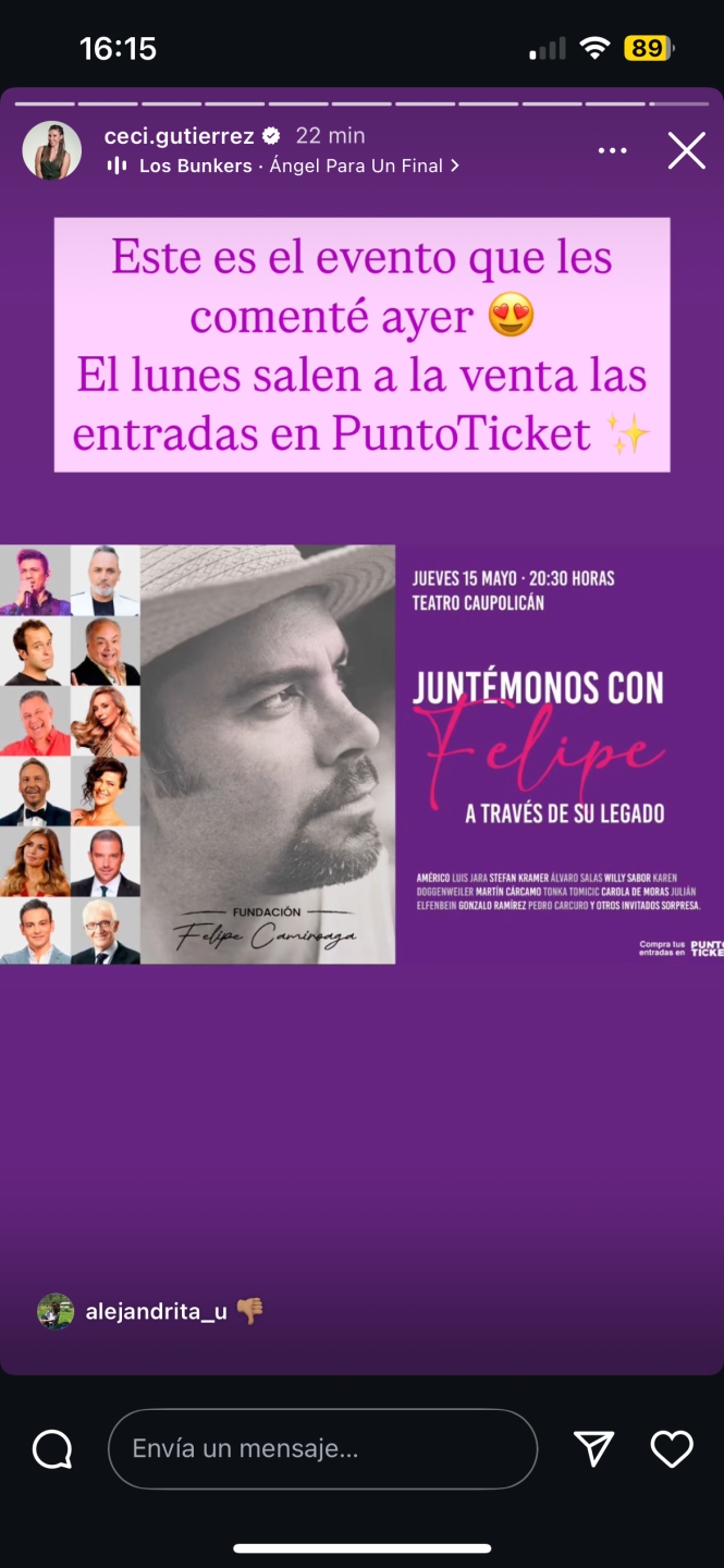 De acuerdo con lo anunciado por la periodista de farándula, Cecilia Gutiérrez, el evento Juntémonos con Felipe a través de su legado, buscará reunir fondos para la fundación Felipe Camiroaga.