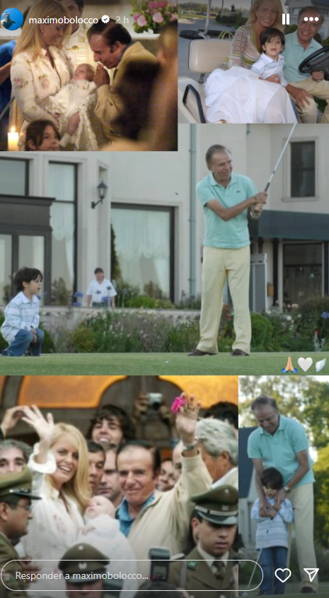 En una de las imágenes, se les ve compartiendo un día de golf, mientras que en otra, Carlos Menem sostiene a un pequeño Máximo en un carrito.
