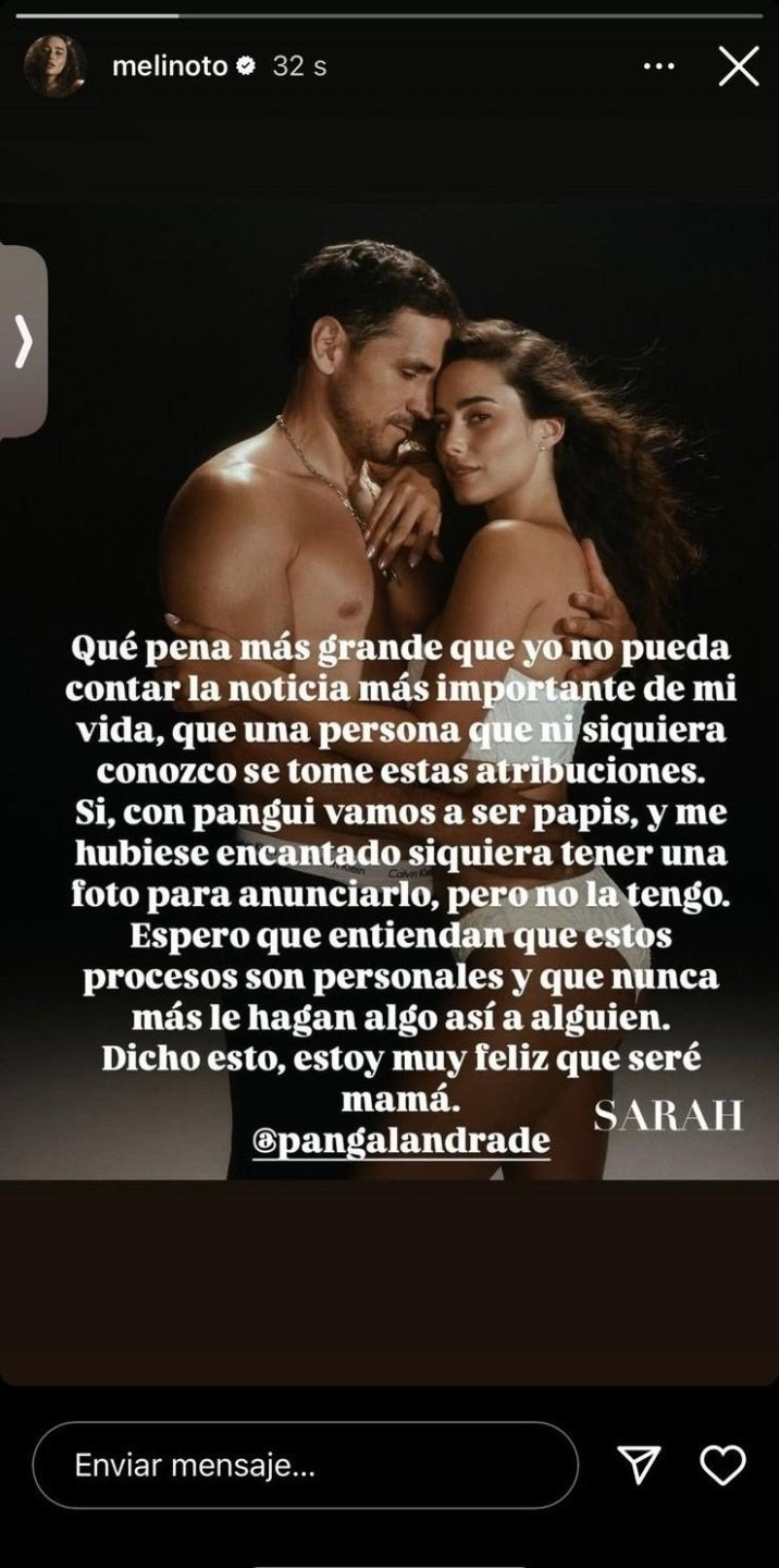 "Sí, con Pangui vamos a ser papis, y me hubiese encantado siquiera tener una foto para anunciarlo, pero no la tengo”, agregó.