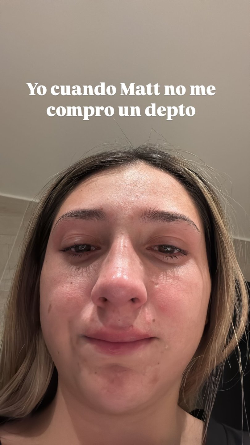 Así, este domingo Carla decidió publicar una fotografía donde aparece llorando, al que agregó un texto que dice: "Yo cuando Matt no me compró un departamento".