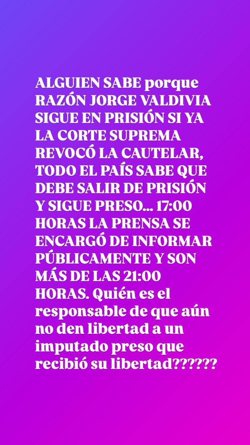 Al respecto, Claudio utilizó su cuenta de Instagram y señaló: "¿Alguien sabe por qué razón Jorge Valdivia sigue en prisión si ya la Corte Suprema revocó la cautelar?".