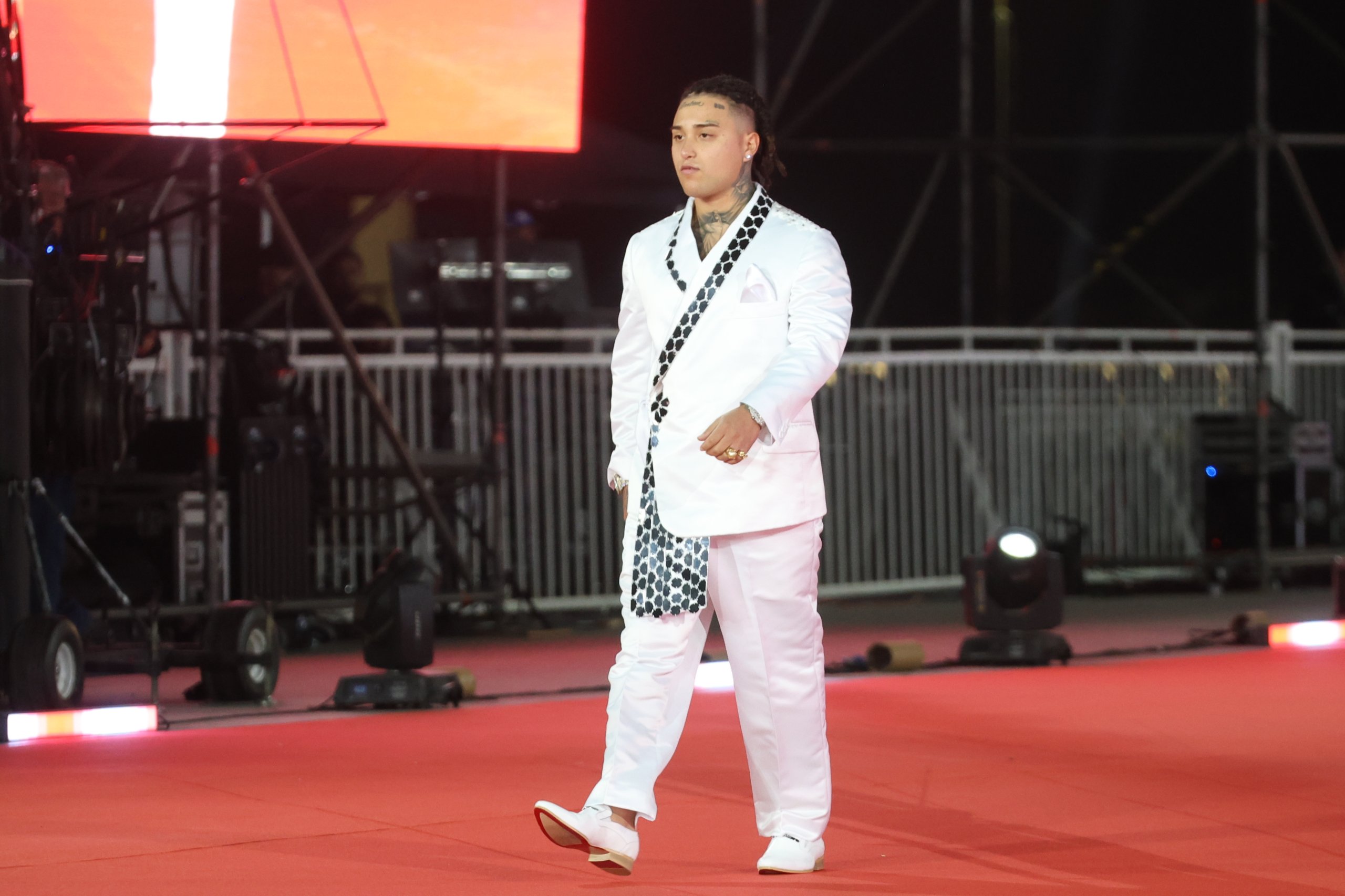 De punta en blanco y reluciente, el artista urbano nacional dejó la vara alta para los demás invitados a la Gala de Viña 2025.