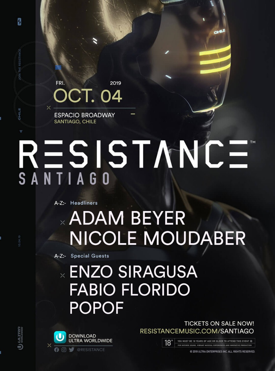 Comenzando a las 16:00 horas, Resistance Santiago ofrecerá a sus asistentes, 13 horas de deleite musical, tecnología de vanguardia, áreas de descanso, alimentación, zonas recreativas y todo lo necesario para vivir un festival de música avanzada.
