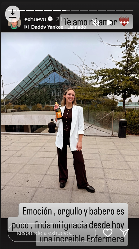 A través de una publicación en Instagram, Daniel señaló: "Y llegó el día, mi amor, que saliste de la carrera de enfermería con nota 7. Solo puedo sentirme orgulloso, feliz por esta etapa cumplida".