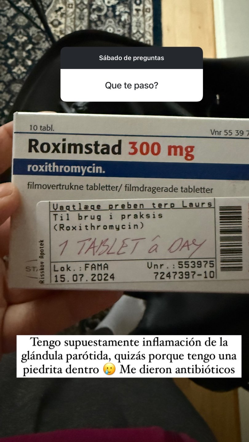 La influencer, que actualmente vive en Dinamarca, comenzó a sufrir malestar en la zona mandibular, por lo que el doctor le diagnosticó inflamación de la glándula parótida, también conocida como paperas, una enfermedad viral.