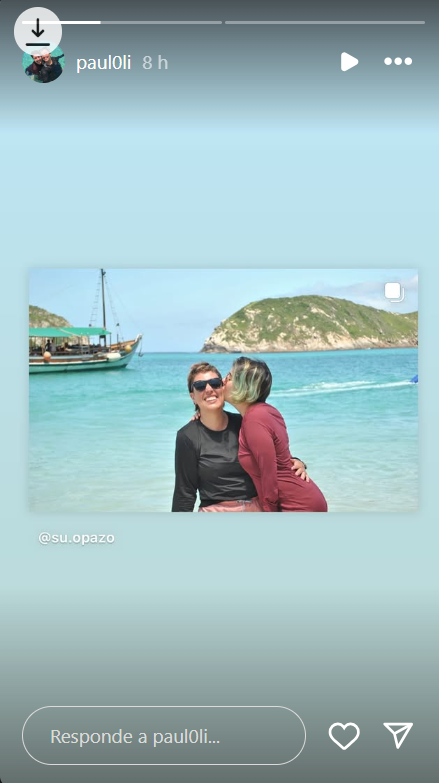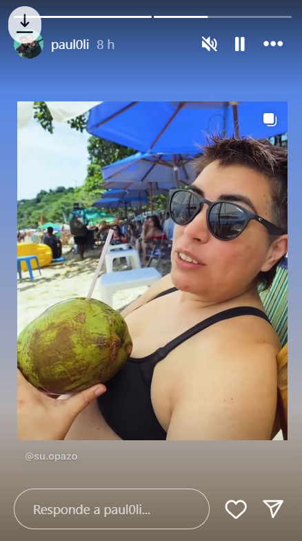 Mediante la sección de historias, publicó una fotografía de ambas en un viaje a Brasil durante diciembre de 2024, y luego un video donde aparece Opazo tomando agua de coco.