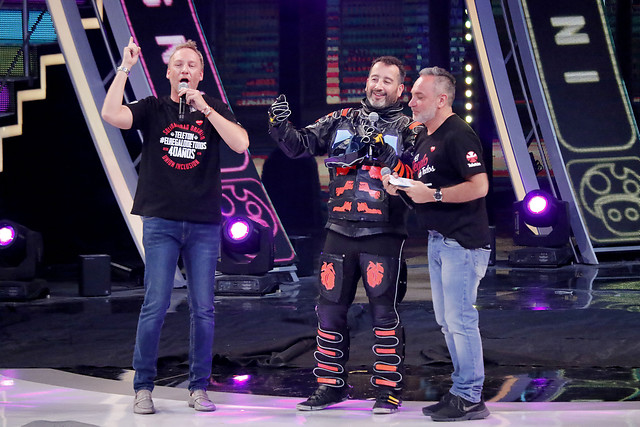 La sorpresa vino cuando el bailarín, quien se lució danzando, se sacó la máscara revelando que era nada más y nada menos que Eduardo Fuentes, animador que dio el vamos a la “Gamertón”, sección que recoge el fanatismo de la generación que creció con un control en la mano jugando “Street Fighter” o “Mario Bros”.