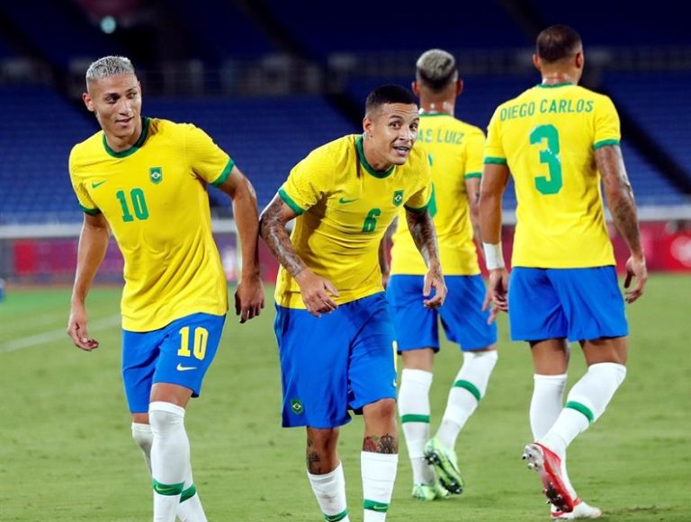 Cuatro futbolistas brasileños no ocultaron su alegría tras la clasificación a la siguiente ronda del fútbol masculino en los Juegos Olímpicos.