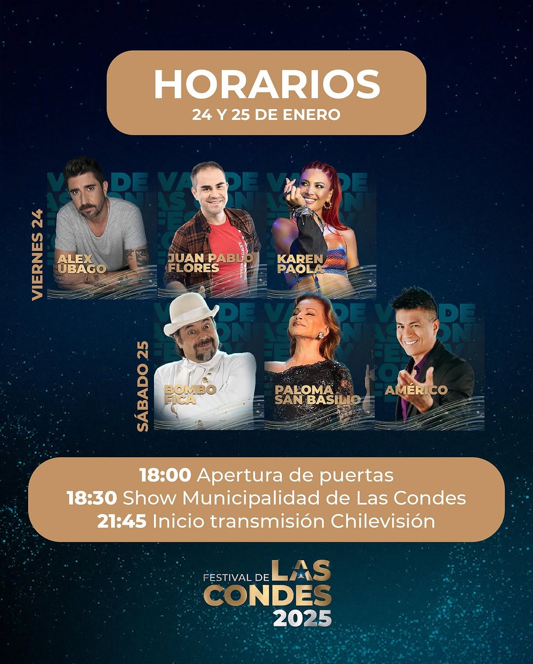 Este viernes 24 y sábado 25 de enero se llevará a cabo una nueva edición del Festival de Las Condes, el cual será transmitido por Chilevisión y sus diferentes plataformas.