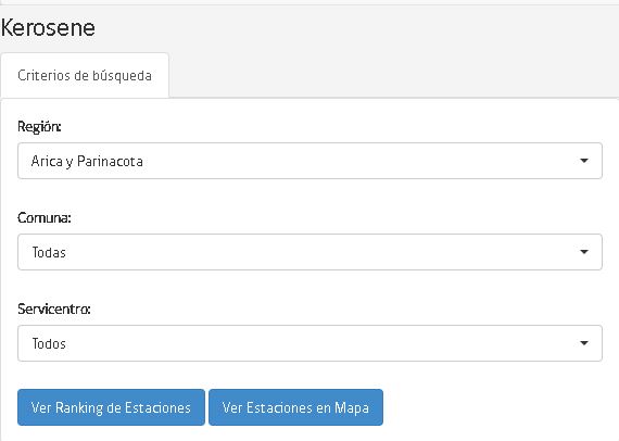 Luego se abrirá una ventana titulada “Kerosene” en la cual aparecerán los siguientes criterios de búsqueda: Región, comuna y servicentros.