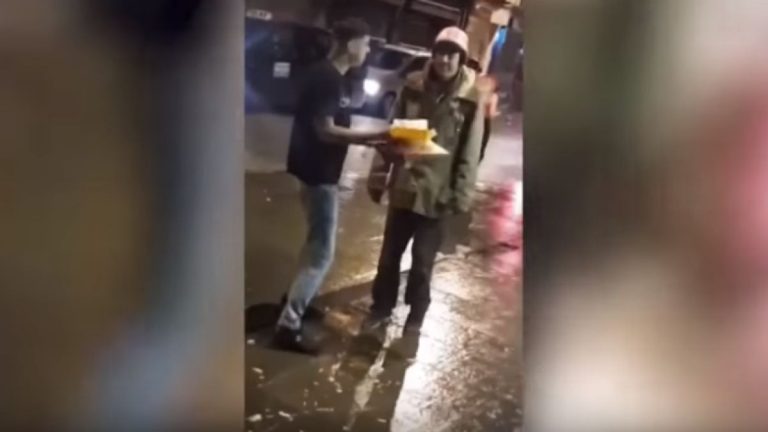 Ahora se arrepiente: Video muestra a joven que lanzó comida en la cara a un indigente