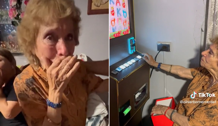 “Así no pierde platita”: Abuela recibió máquina tragamonedas en Navidad y su emotiva reacción se hizo viral