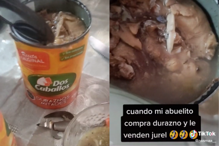 “Cuando mi abuelito compra duraznos y le venden jurel”, detalló la usuaria que compartió el video, mientras que de fondo se puede escuchar a alguien preguntarle al afectado que dónde compró el tarro, quien le responde que fue “en la feria”.