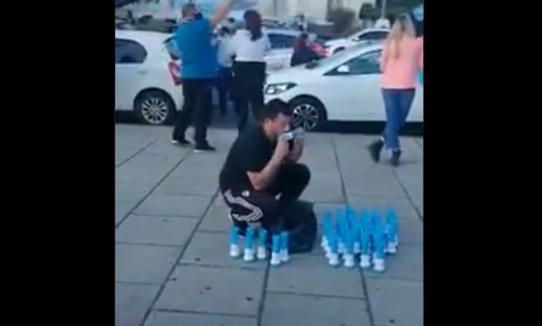A través de redes sociales se viralizó un video en el que se ve probándolas y, las que no suenan, las va dejando a un costado. El hecho causó repudio.
