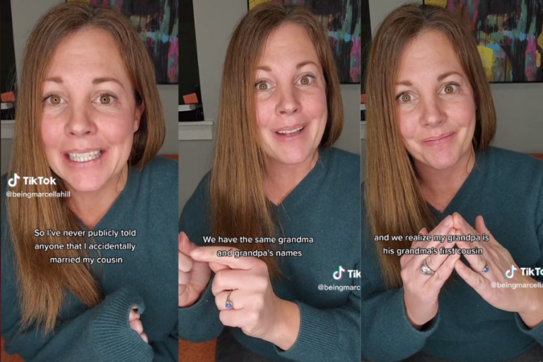 @beingmarcellahill Funny story… I accidentally married my cousin. We had no idea our Grandma and Grandpa were 1st cousins. Oops. #funnystory #marcellahill #wakeherup #marriage #marriedlife #awakening #momsoftiktok #grandmasoftiktok ♬ original sound – Marcella Hill