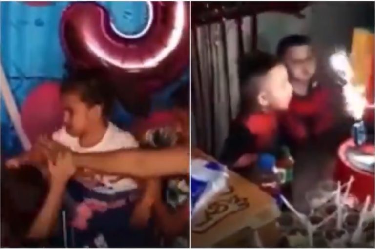 Según se ve en un video rescatado de Facebook, en el cumpleaños de un niño, el pequeño tenía problemas con la prominente vela que la torta tenía, ya que no le daban los pulmones para apagarla.