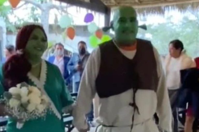 Se trata de Shrek. Sí. Leíste bien. Ambos optaron por casarse vestidos de los ogros más famosos del mundo.