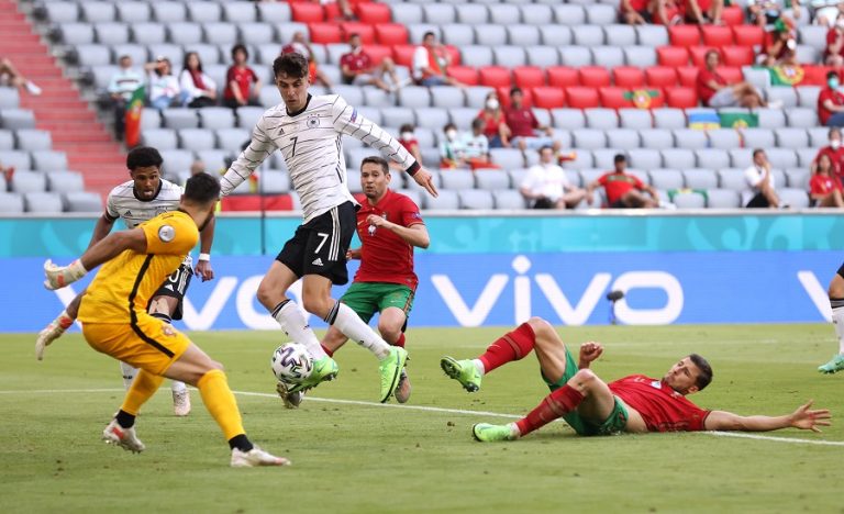 Sin embargo, los germanos comenzaron a presionar y dieron vuelta el marcador gracias a los autogoles de Rúben Días y Raphaël Guerreiro, finalizando de esa forma el primer tiempo.