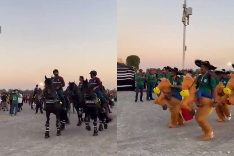 "Somos un pinche desmadre": Hinchas mexicanos causan furor con disfraz de charros montando a caballo en Qatar