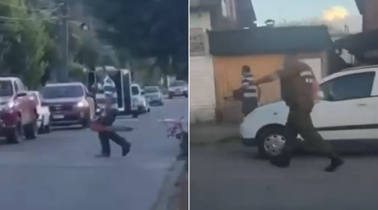 "¡Oye, suéltala!": Graban a sujeto amenazando con motosierra a conductor tras accidente en Panguipulli