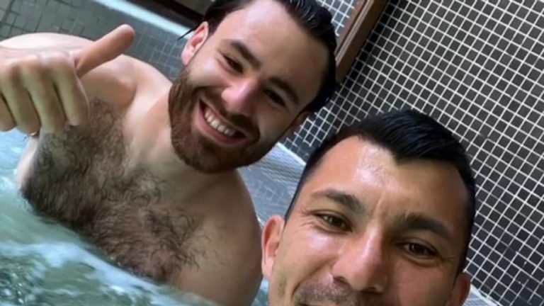 El futbolista chileno, Gary Medel, conocido popularmente como el “Pitbull“, compartió dos historias en su cuenta de Instagram donde se le ve en la piscina del hotel de concentración junto a Ben Brereton.