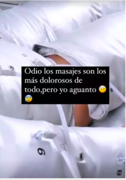 La ex participante del programa "¿Volverías con tu ex?" confesó que la parte más compleja de la cirugía es el tratamiento post operatorio donde deben realizarle masajes linfáticos y de drenaje para que su cuerpo no genere fibrosis: "Odio los masajes, son los más dolorosos de todo, pero yo aguanto. Otro día de masaje, auch (sic) qué dolor, pero vale la pena".