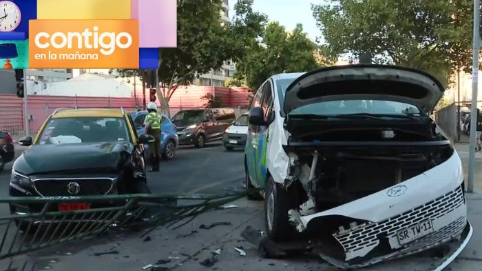 Imprudente acción: Paso en luz roja provocó choque entre taxi y van de la ACHS en Santiago Centro