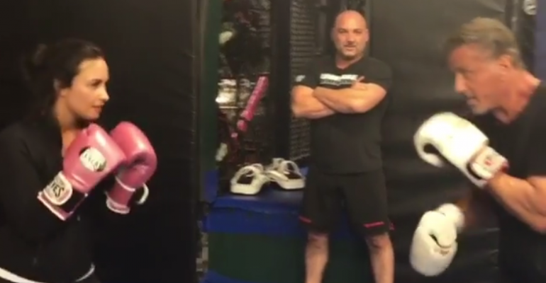 Demi Lovato tiró a la lona a Stallone en dinámica boxeo