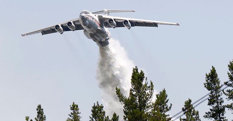 El avión ruso realizó la jornada de ayer sus primeros trabajos en las zonas afectadas por los incendios.