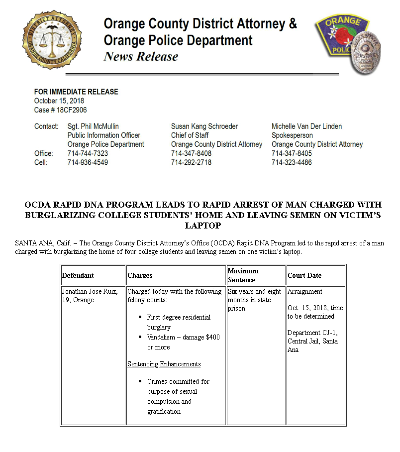 Según informó la cadena de noticias RT, el sujeto, identificado como Jonathan Ruiz (19), quien ingreso a la casa de unas vecinas, justo cuando las residentes se habían ausentado durante unas horas para asistir a clases.