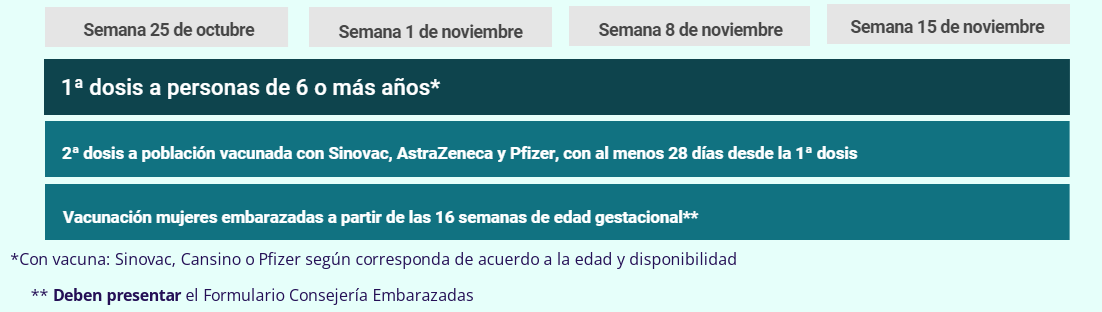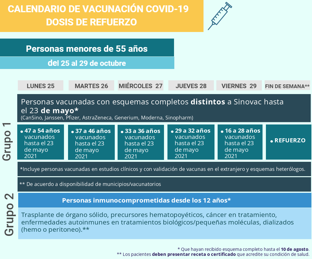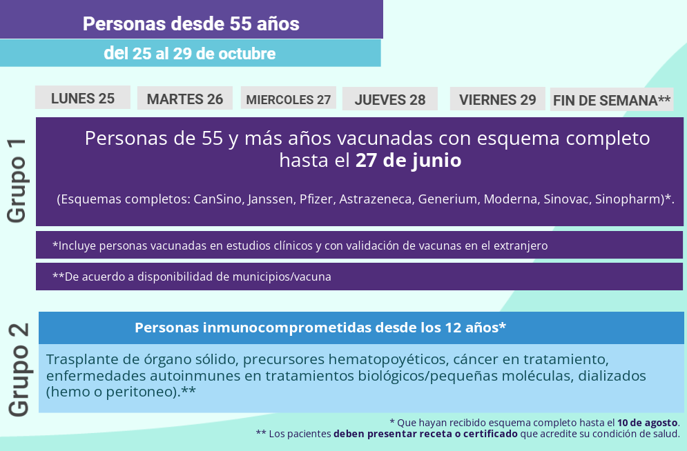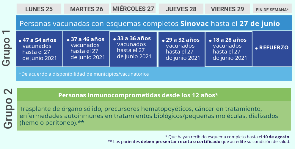 - Con segunda dosis a población vacunada con Sinovac, AstraZeneca y Pfizer.