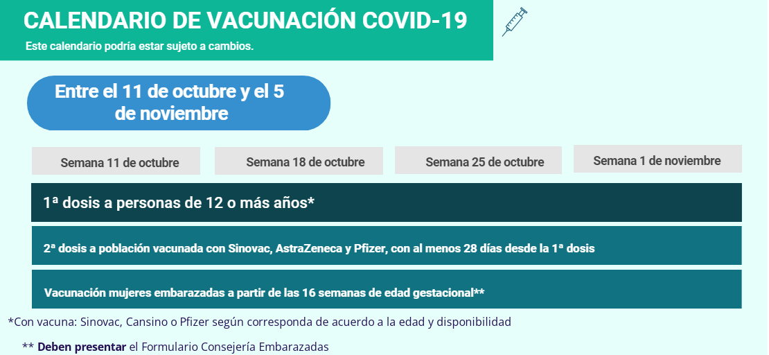- Segunda dosis a población vacunada con Sinovac, AstraZeneca y Pfizer.