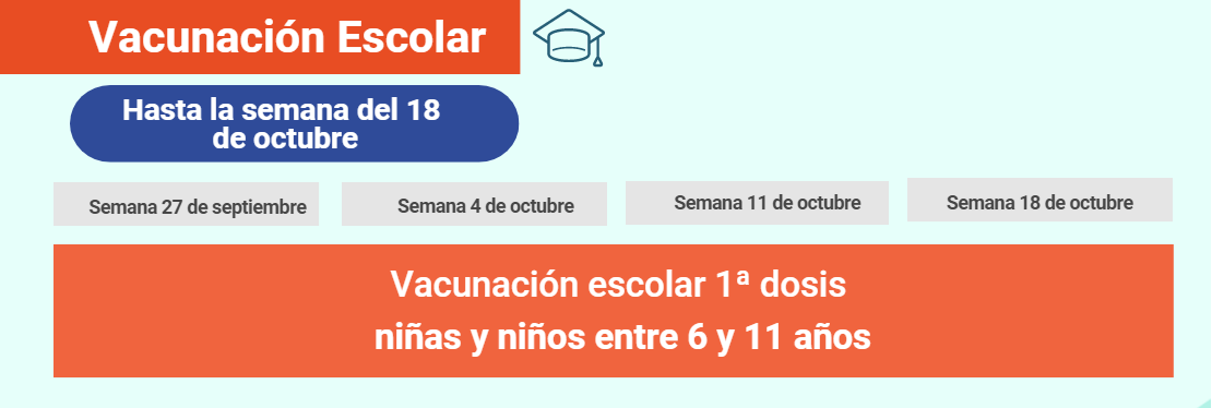 Este 18 de octubre, la inoculación para los escolares sí estará disponible con la primera dosis para los niños y niñas entre los 6 y 11 años.