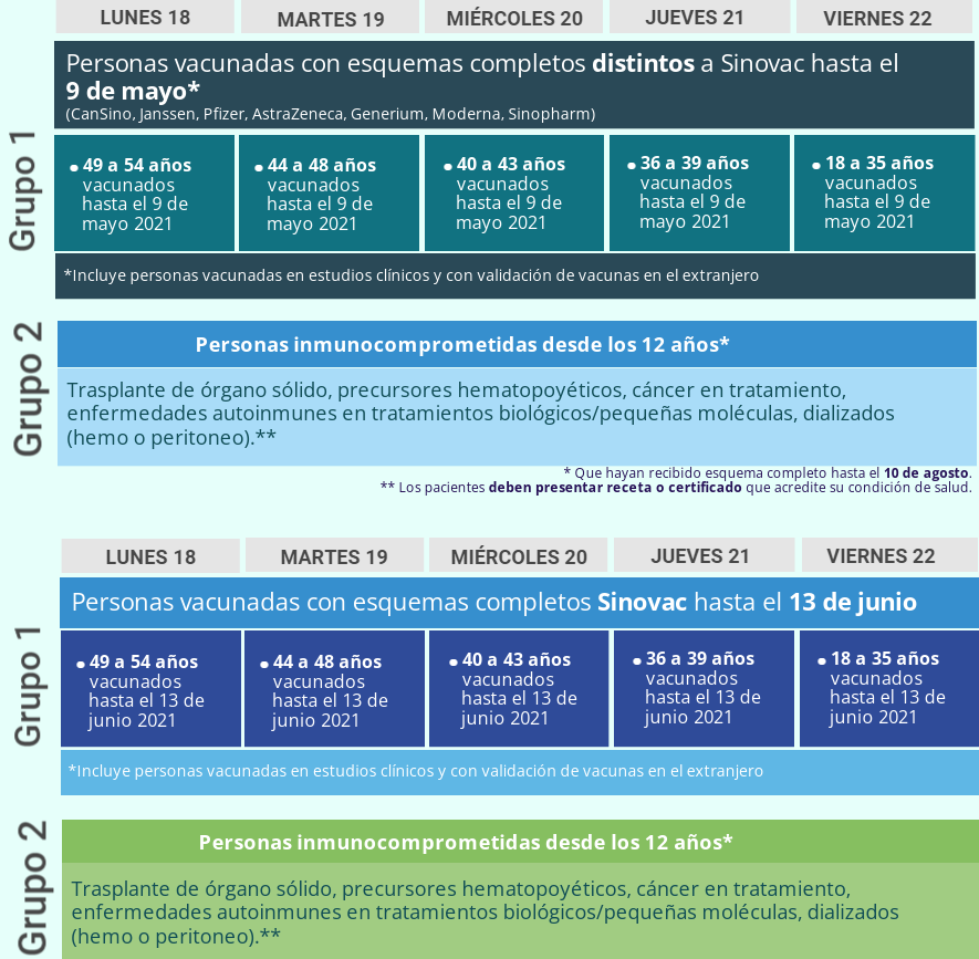 - Personas de 49 a 54 años vacunados hasta el 9 de mayo 2021 (distinto a Sinovac).