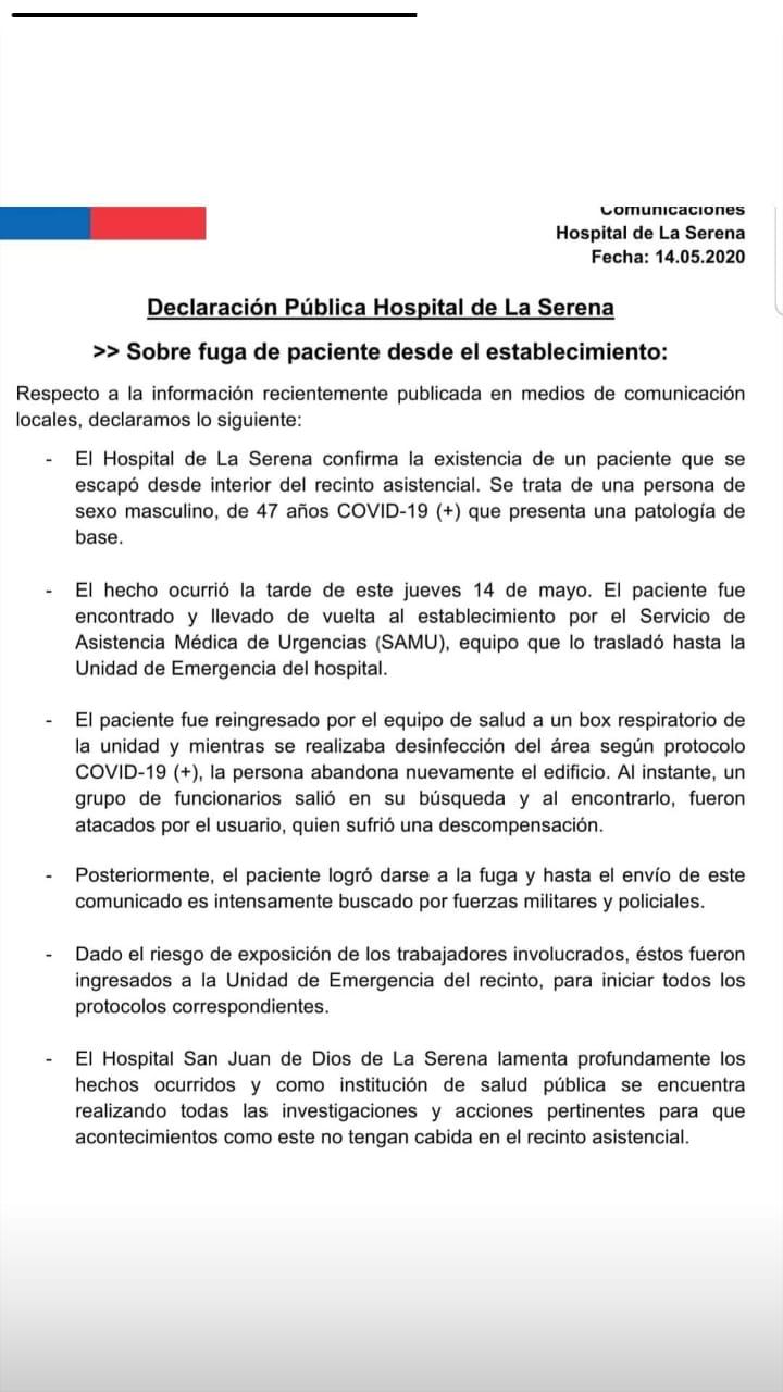 Decretan prisión preventiva a posible contagiado con COVID-19 que huyó de hospital de La Serena
