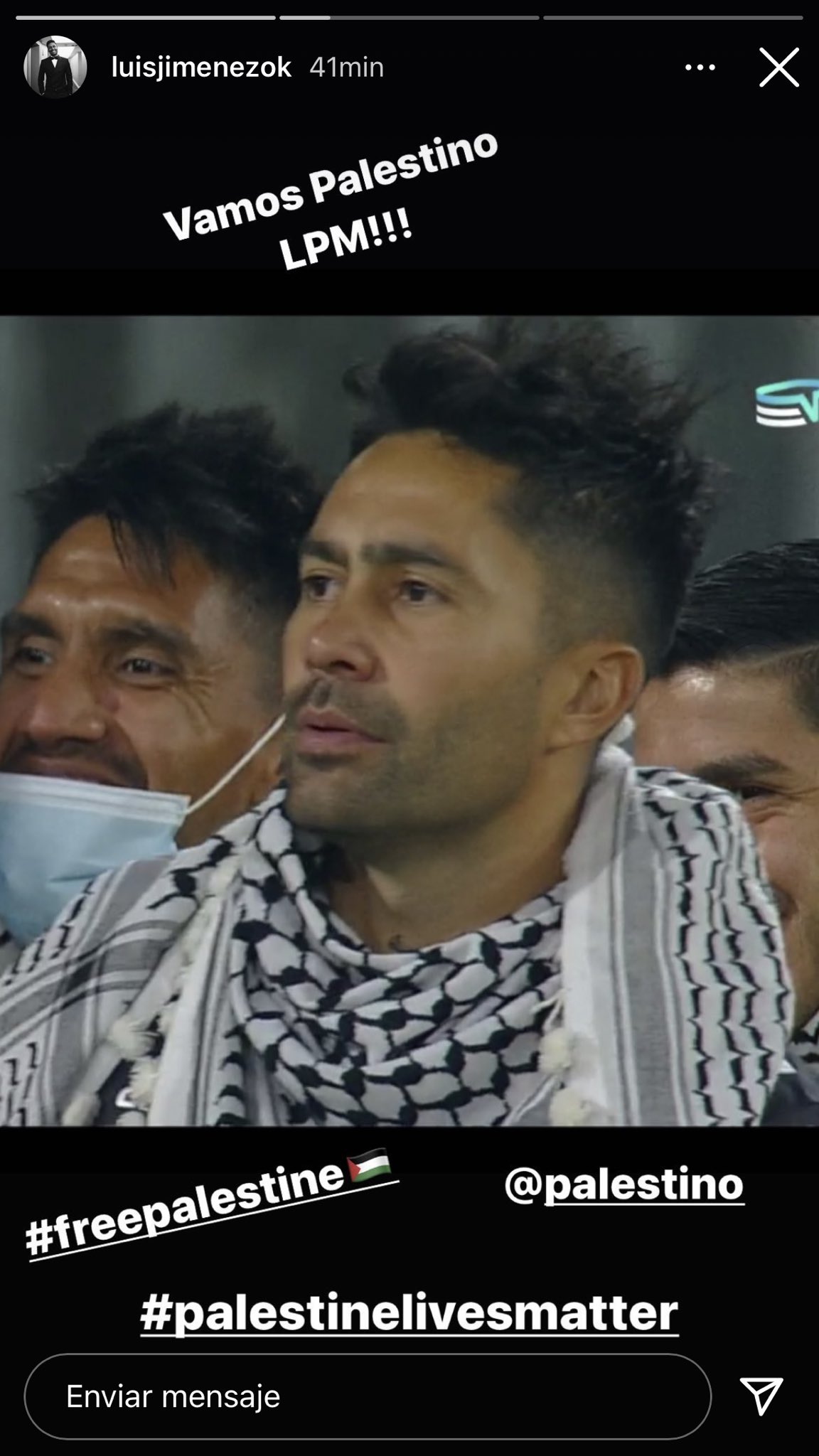 Si hay un jugador que tiene bien puesta la jineta, es Luis Jiménez. Y lis hinchas de Palestino agradecemos que no se mantenga al margen de lo que pasa en Jerusalén. #SaveSheikhJarrah 🇵🇸 pic.twitter.com/O1Ow1VSyOw— Nabzo (@JoseNabzo) May 9, 2021