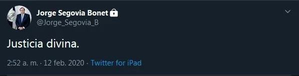 Posterior al encuentro, utilizó su cuenta de Twitter personal para hacer sus descargos y burlarse del club laico. "Justicia divina", escribió el mandamás del elenco de Plaza Chacabuco.