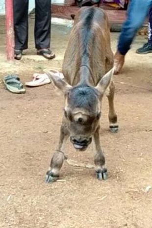 Sería la reencarnación de un Dios: Nace ternero con tres ojos y cuatro fosas nasales