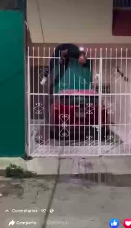 El hombre intentó escapar de la vivienda por la ventana, pero perdió el equilibrio. Fueron los vecinos de un barrio en Campeche, México, quienes captaron el momento.