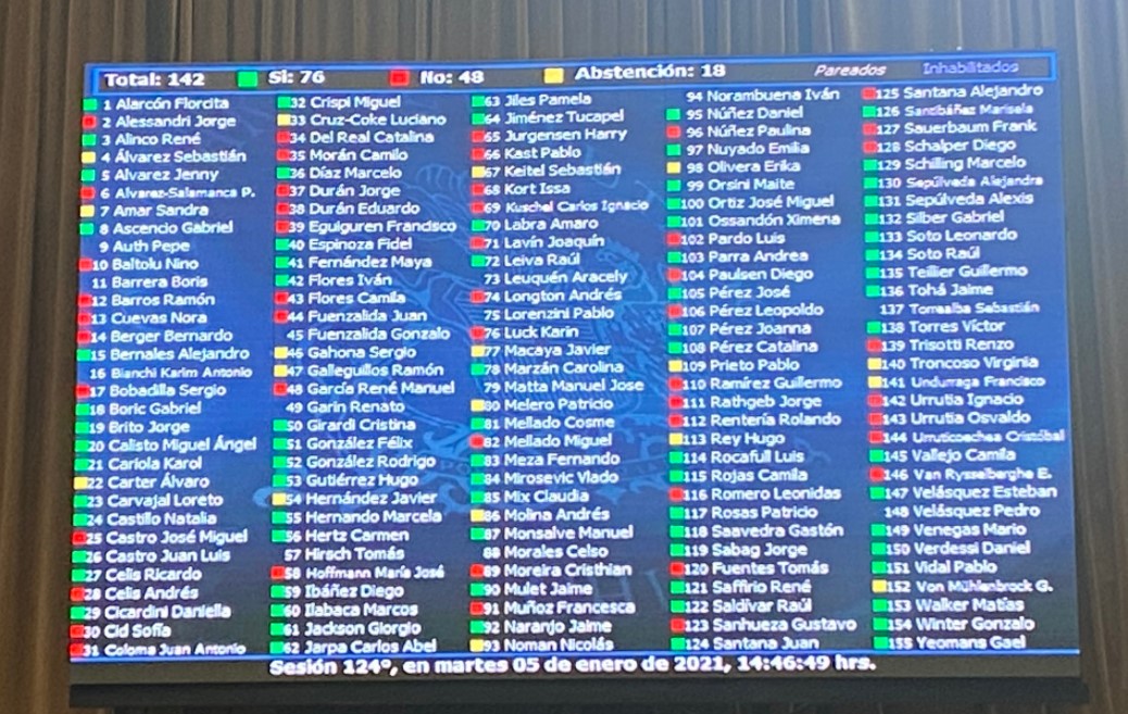 Con 76 votos a favor, 48 en contra y 18 abstenciones, la moción no alcanzó el quórum necesario para su aprobación, que era de 89 votos.