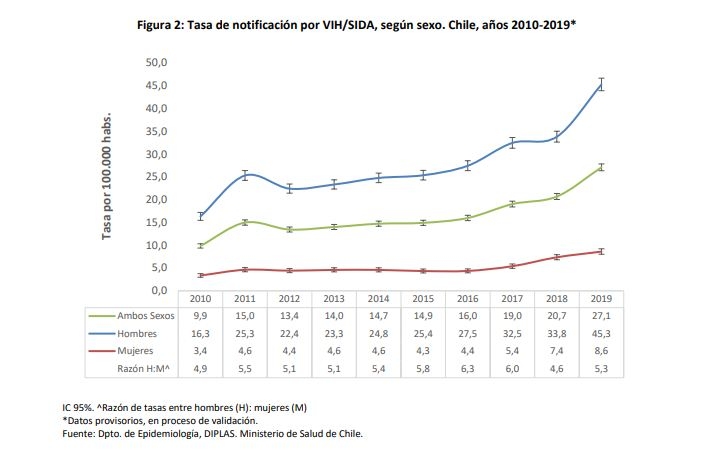 Casos notificados con VIH en Chile aumentaron en un 30,9% en el 2019